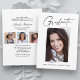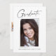 Cartões de anúncio de graduação "4 fotos", limpos, modernos e elegantes, com design elementos do texto moderno com um único roteiro de tinta para a caligrafia. As fotos do formando são acentuadas com uma delicada e minimalista barreira de gradiente. A parte traseira do cartão oferece espaços de texto personalizados para informações sobre a sua graduação ou pode ser apagada se você quiser enviar uma mensagem. Preto e branco ou personalize facilmente o fundo para corresponder à cor primária da sua escola ou a qualquer cor da sua escolha. Perfeito para mais velho de segundos graus, universitários e universitários.
