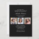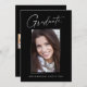 Cartões de anúncio de graduação "4 fotos", limpos, modernos e elegantes, com design elementos do texto moderno com um único roteiro de tinta para a caligrafia. As fotos do formando são acentuadas com uma delicada e minimalista barreira de gradiente. A parte traseira do cartão oferece espaços de texto personalizados para informações sobre sua graduação. Preto e branco ou personalize facilmente o fundo para corresponder à cor primária da sua escola ou a qualquer cor da sua escolha. Perfeito para mais velho de segundos graus, universitários e universitários.