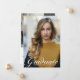 O formando é escrito em um simples roteiro branco sobre a sua foto de retrato do mais velho para um cartão de anúncio de graduação moderno. Personalize com seu nome e segundo grau ou classe universitária de 2025 sob a tipografia cursiva e adicione seus detalhes pessoais na parte de trás desses anúncios de graduação moderados e contemporâneos.