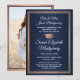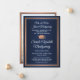 Compartilhe a alegria de uma formatura do ensino médio ou faculdade com elegantes anúncios personalizados em azul-marinho, cobre e branco. (DICA DE POSICIONAMENTO DE IMAGEM: Uma maneira fácil de centralizar uma imagem exatamente como você deseja é cortá-la antes de fazer o upload para o site da Zazzle.) Este modelo de estilo formal inclui os nomes dos pais e do graduado, bem como qualquer texto de sua escolha, como detalhes do convite para a festa, honrarias especiais, título do diploma, citação inspiradora favorita, informações de contato do graduado, planos de educação futura ou novo cargo. Todo o texto é fácil de personalizar. O design apresenta um fundo azul moderno ombre, borda de folha falsa e um boné de formatura, caligrafia elegante, tipografia tradicional e uma foto de sua escolha, como uma foto de formatura ou imagem da cerimônia de formatura. Por favor, note que o cobre é a cor impressa, não folha metálica. Esses cartões de anúncio de formatura são uma maneira moderna e sofisticada de compartilhar a celebração do seu dia especial com familiares