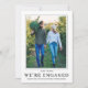 Compartilhe seu noivado com amigos e familiares com este anúncio de noivado. O modelo DIY é fácil de usar. Você pode facilmente carregar uma foto dos dois, alterar os nomes e adicionar uma mensagem personalizada. As pessoas vão adorar ver vocês dois juntos. A parte traseira tem um padrão de floco de neve elegante que envolve uma linha de texto.