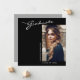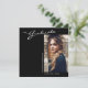 Este moderno e elegante cartão de anúncio de graduação, apresenta elementos design do texto moderno fundidos com um elegante roteiro de caligrafia. A foto vertical dos formandos é posicionada de forma artística na frente do cartão, enquanto a parte traseira do cartão oferece espaços de texto personalizados para informações sobre a graduação e a viagem futura. Os fundos são pretos na frente e cinzas prateadas na parte traseira ou personalizam-nos facilmente para as cores de sua escolha. Para ver mais itens como este, visite minha loja aqui em "www.Zazzle.com/LakeViewCardCo". Obrigados