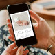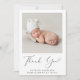 Mínimo anúncio de nascimento de um bebê ou de uma menina e cartões de agradecimentos com a foto de seu recém-nascido e "Obrigado" em um roteiro elegante com uma batida cardíaca. Personalize com seu nome, data de chegada e estatísticas de nascimento em uma simples tipografia moderna. No verso, adicione uma foto adicional e sua mensagem personalizada de anúncio e obrigado.