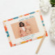 Um padrão cativante inspirado pelo espírito vibrante dos anos 1970 e 1960, que combina meio círculo e guaivotas adorna essa elegante salva a data. O padrão é desenhado elegantemente numa paleta de azul, laranja e amarelo, colocado sobre um fundo clássico de náutica. Escolha sua melhor foto de noivado e certifique-se de marcar seus calendários com esta incrível foto MODERNA do MÉDIO Vintage, salve a data inspirada nos estilos icônicos dos sessenta e anos setenta giratórios. Adicione sua foto e detalhes usando o modelo. O cartão inverso está em azul correspondente. Outros itens correspondentes disponíveis na loja ou mediante solicitação. Coordenado para Coleção Azul Laranja Moderna de Meio século Retroativo