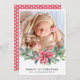 Um cartão bonito para anunciar o primeiro Natal do seu bebê. O design apresenta flores de poinsettia vermelha, de cor aquosa e fotos personalizadas. Personalize esta placa adicionando seus detalhes.