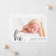 Esta carta de apresentação de fotos encantadora apresenta um olhar contemporâneo que é igualmente adequado para raparigas e rapazes. Escolhemos cantos arredondados como a configuração padrão de forma, mas você pode facilmente mudar a aparência para cantos agudos, pois essa aparência também funciona maravilhosamente com esta design. Parcialmente sobrepostos com a foto no canto inferior esquerdo, adicionamos um simples 'hi' em maiúsculas em um roteiro moderno e relaxado com um período que dá um sentimento de calor e familiaridade. Este elemento do design não pode ser alterado, mas se você quiser em uma cor diferente do preto que escolhemos aqui, por favor verifique nosso compro para outras cores, e por favor use o recurso de bate-papo zazzle para nos informar se você gostaria de seu 'hi' em uma cor específica e ficaríamos felizes em fazê-lo para você! O nome e o texto de estatísticas na frente também estão em preto, mas quando você edita nosso texto de amostra para mostrar seus próprios detalhes, você também pode facilmente alterar essa cor e fonte de texto para se adequar ao seu estilo. Por exemplo, você pode realçar o nome do seu bebê escolhendo uma cor diferente do preto padrão. Se preferir uma aparência mais minimalista, você pode excluir sem substituir qualquer um de nossos estados de amostra - talvez não queira incluir a hora do dia ou a duração, por exemplo. Nós definimos o plano de fundo de ambos os lados como transparente, para que a cor do seu papel sirva simplesmente como o tom base. Você pode mudar isso em um ou em ambos os lados escolhendo uma cor, seja ela azul ou rosa macio ou qualquer outra coisa. Na parte traseira, adicionamos um texto de espaço reservado para que você substitua por sua própria mensagem. Embora tenhamos usado cinzas escuras para o texto do marcador de posição, você pode mudar a cor assim como a fonte. Depois de excluir nosso texto de marcador de posição, você pode simplesmente deixar o vazio de trás completamente, para que possa adicionar uma mensagem manuscrita com suas assinaturas depois de receber seus cartões. Em qualquer caso, lembre-se de remover todo o espaço reservado e texto de amostra em ambos os lados, assim como nossa foto de amostra! O tipo de papel padrão, matte, tem um calor suave e resiste a manobras, então é uma escolha excelente para escrevendo sua própria mensagem. Use as ferramentas intuitivas de design, sua foto favorita e sua inspiração para personalizar esta placa simples de anúncio de nascimento personalizada e torná-la exclusivamente sua!