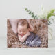 Um anúncio de nascimento neutro em relação ao gênero para dar boas-vindas à sua filha ou bebê. O simples design apresenta uma foto favorita na frente com boas-vindas em uma tipografia fofa. O verso apresenta uma fotografia e todos os detalhes importantes, incluindo o nome do bebê, as estatísticas de natalidade e uma mensagem pessoal dos pais.