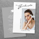 Este moderno e elegante cartão de anúncio de graduação, apresenta elementos design do texto moderno fundidos com um elegante roteiro de caligrafia. A foto vertical dos formandos é posicionada de forma artística na frente do cartão, enquanto a parte traseira do cartão oferece espaços de texto personalizados para informações sobre a graduação e a viagem futura. Os fundos são brancos na frente e cinzas prateadas na parte traseira ou personalizam-nos facilmente para as cores de sua escolha. Para ver mais itens como este, visite minha loja aqui em "www.Zazzle.com/LakeViewCardCo". Obrigados