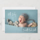 Cartão de anúncio de nascimento moderno com uma foto horizontal do seu novo bebê junto com "olá bebê" e o nome do bebê em um roteiro elegante. O verso tem uma colagem de fotos com três fotos quadradas junto com sua mensagem pessoal. Estes cartões de anúncio são um excelente para compartilhar a notícia do seu bebê ou garota recém-nascido.