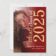 Moderno 2 fotos da graduação Dourada Maroon 2025. Uma tipografia e fotografia de na moda com uma camada de tonalidade graduada para anunciar as notícias do formando da classe do mais velho, com o na moda grande texto girado e do lado direito no topo em ouro e branco. Personalize facilmente o resto do texto, incluindo a sua mensagem no verso. Substitua as fotos nos modelos de cada lado por suas próprias fotos.