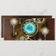 Lentes de turquesa com relógio antigo com engrenagens de latão e chaves de ouro sobre fundo enferrujado e marrom. Estilo Steampunk.