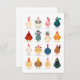 Um grupo de galinhas e galos coloridos, bonitos e engraçados, que ficam em filas.