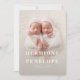 Multifoto gêmea moderna geométrica + anúncio de nascimento tipográfico. A cor de fundo pode ser alterada.