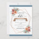Maneira elegante de deixar seus hóspedes reservarem seu encontro! Design geométrica maravilhosa com buquês florais de cor d'água pintados à mão, requintados, com flores e folhagem, em branco, rosa poeirento, marfim, pêssego, azul de ardósia nublada, cinzas e tons de sábado. Fitas deliciosas em volta da sua data. Uso de detalhes modernos de caligrafia escrita à mão. Traseira e listras na frente em ardósias elegantes/turvas, listras azuis, de cima e de baixo. As faixas à frente podem ser eliminadas, se desejado. Pacote de convite de coordenação disponível. Parte do nosso casamento e da coleção de eventos "Ereal em Azul Dusty".