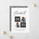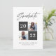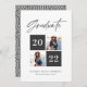 Anúncio geométrico de graduação em tipografia multifotografia. Apresentando tipografia em negrito e texto de script de tendência. A cor geométrica do fundo preto e branco pode ser alterada.