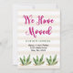 Esta elegante e moderna mudança de cartões de endereço apresenta uma ilustração do cacto, com texto rosa escuro e verde sobre fundo listrado neutro, para um olhar glamouroso do deserto. Estas cartas dizem "nós nos mudamos" na tipografia da moda, e têm bastante espaço para suas novas informações de endereço. Arte tirada de Designs Indie Grace.