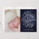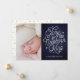 Este design tradicional apresenta um céu noturno azul escuro com estrelas brilhantes e a frase "Glória ao Rei Recém-Nascido".