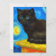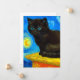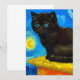 Cartão com um gato Van Gogh no estilo da Noite Estrelada! Um gatinho negro e fofo permeia uma mesa contra um céu azul e uma lua amarela. Um presente perfeito para amantes de gatos e colecionadores de arte holandeses!