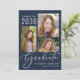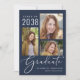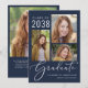 Anúncio de graduação em azul moderno com 3 fotos de colagem e "Formando" em um roteiro elegante em branco. Adicione o nome do formando, ano de aula e escola ou universidade em tipografia branca simples. No verso, adicione uma foto adicional e sua mensagem personalizada.