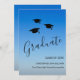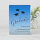 Envie a sua família e amigos este simples e moderno cartão de anúncio de graduação. Este design apresenta um céu azul com bonés formandos no ar! Personalize com seu próprio nome, escola e ano.