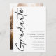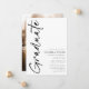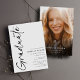 Este é um cartão de anúncio de graduação minimalista e moderno. É um design de guião simples e na moda, escrito à mão, em preto e branco clássico, com uma fotografia no verso. Entre em contato com o designer para obter informações sobre este design.