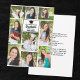 Esta simples e moderna placa de lançamento de formando fotográfico apresenta as suas fotografias de retrato favoritas de 9 mais velho. Esses cartões de anúncio de graduação de blocos de fotos limpos apresentam tipografia negra de classe do seu segundo grau ou nome da faculdade para a classe de 2025. Personalize com o seu ano de graduação abaixo do boné formando preto. Ele contém 2 fotos horizontais, 5 fotos verticais e 2 fotografias quadradas.
