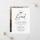 Anúncio de Graduação com Foto Preto e Branco em Script Simples com tampa de folha dourada elegante e tipografia minimalista. Clique no botão de edição para personalizar este design. Adicione facilmente uma foto ao verso.