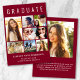 Anúncio de graduação vermelho de burgundy moderno com "FORMANDO" em letras grandes brancas, uma colagem de sete fotos e seu nome, ano de aula e escola em tipografia branca moderna. No verso, adicione uma foto adicional e uma mensagem personalizada.