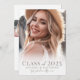 Um anúncio de graduação simples e elegante, inspirado no bô, com uma estética leve e brilhante. A frente apresenta uma foto de página de cheio com um gradiente branco suave na parte inferior, formando o texto de forma elegante. "Classe de 2025" aparece em fontes clássicas bege ou taupe, seguidas pelo nome do formando e pela escola em elegante roteiro manuscrito para um toque de eterno. O verso mostra uma colagem de três fotos ou banda fotográfica, juntamente com o nome do formando, a escola e o espaço para uma mensagem pessoal destacando realizações e planos futuros. A design continua com um fundo branco e um esquema de cores bege, criando uma vibração harmoniosa e sofisticada. Totalmente personalizável para se adequar ao seu estilo ou corresponder às cores da escola.
