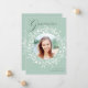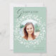 Um elegante cartão de anúncio de graduação com uma coroa de silhuetas de flor branca, com uma foto e uma mensagem no verso.