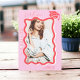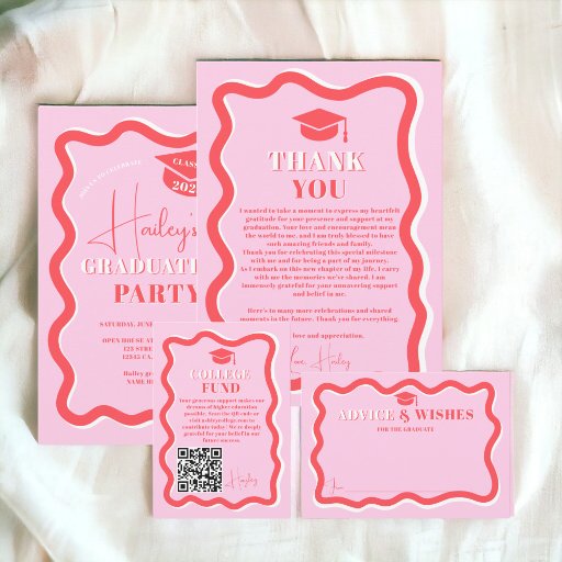 Um convite legal para a graduação do nome em negrito com a fotografia de onda do rabisco vermelho-rosa retroativo. Todas as cores de texto, nomes e fundo são personalizáveis.