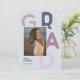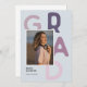 Classe de Foto da Tipografia Moderna do Anúncio de Graduação 2022 em tons suaves de roxo e azul com uma foto enquadrada e seu texto personalizado na frente e na mensagem no verso. Você pode mudar as cores das letras e do fundo na ferramenta design Zazzle!