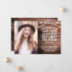 Anuncie sua formatura em segundo grau à sua família e amigos em estilo com este cartão de anúncio de fotos cristãs rústico.Este modelo de design apresenta sua foto à esquerda e à direita é um verso bíblia em uma tipografia moderna de guião branca que lê "Deus tem mais em sua loja do que você pode imaginar. Ephesianos 3:20" com sua classe/ano, nome, nome da escola e data para você personalizar em um fundo de madeira de cereja falso decorado com luzes de cordas. A parte de trás da carta é textura de cereja. Parabéns pela sua formatura! Desenhada pela artista Susan Coffey.