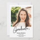 Um pincel de script de formando preto e branco moderno, simples, com 2 fotos de anúncio de graduação. Adicione sua mensagem no verso.