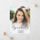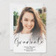 Um moderno e simples formando preto em roteiros brancos com dois anúncios de graduação de fotos. Adicione sua mensagem no verso.
