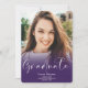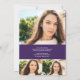 Um formando roxo moderno, simples, com 4 fotos anunciadas para a graduação. Adicione sua mensagem no verso.