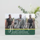 Compartilhe a alegria de um segundo grau ou formandos com anúncios de cores verdes e dourados personalizados com colagem de 4 fotos. As imagens e todos os textos deste modelo são simples de personalizar com quaisquer detalhes de sua escolha, como informações sobre convites de festas, nomes de pais, honras especiais, título de grau, citação inspiracional favorita, informações de contato do formando ou planos para o futuro. Todas as cores podem ser personalizadas com a ferramenta design Zazzle. (DICA DE IMAGEM: Uma maneira fácil de centralizar uma foto exatamente como você deseja é recortá-la antes de carregá-la no site do Zazzle.) O design verde e dourado apresenta uma caligrafia moderna com um boné de conselho de argamassa, uma elegante tipografia de serifa clássica, e quatro fotos de sua escolha, como fotos de mais velho ou imagens da cerimônia de início. Observe que o ouro é amarelo impresso, não é folha metálica. Disponíveis como anúncios digitais impressos e descarregáveis, esses cartões de graduação modernos são uma na moda para compartilhar uma celebração especial com a família e os amigos. Parabéns ao formando!