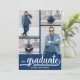 Adicione as suas quatro fotos favoritas à frente destes convites para festas de formatura com formando e classe de caracteres em caracteres chicos em um fundo azul. Mais designs e cores feitas em nossa loja, incluindo convites, cartões salve a data e postais.