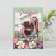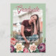 Parabéns único e moderno anúncio e cartão de convite de festas de celebração do formando, enquadrado com um belo primavera de cor d'água colorida e uma coroa floral de verão num clássico mauve branco pastel esticado e esticado fundo cor-de-rosa. Com espaço para personalizar ou personalizar com uma foto, o nome do formando, o ano de graduação, o segundo grau, o nome da futura faculdade ou universidade e as informações sobre eventos de festas de celebração. Deixe a família, amigos e vizinhos saberem que há um formando feliz pronto para conquistar o mundo, e convide todos a virem celebrar o feliz evento com vocês!