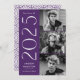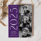 Anúncio de graduação de na moda com três fotos localizadas à direita do design em um layout vertical. "2023" é apresentado em letras brancas, modernas de arte, com um fundo roxo. Personalize o anúncio moderno da graduação de fotos, adicionando o nome do formando e o nome da escola. A design é revertida para exibir um plano de fundo geométrico roxo e branco. Perfeito para segundos graus e formandos!