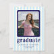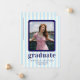 Comemore em estilo com o nosso cartão de anúncio de chic e de graduação moderna. Apresentando como pano de fundo azul claro e listras cremosas lúdicas, este design é enfeitado com texto marinho ousado para um talento vibrante e contemporâneo. Perfeitamente adaptado para mostrar suas fotos queridas, é uma maneira sofisticada de anunciar sua formatura.