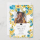 Celebre este marco inesquecível com um anúncio alegre de graduação do boho com florais de aquarela pintados à mão em tons azuis e amarelos. A frente mostra uma foto e um layout elegante de texto, enquanto a parte de trás deixa espaço para um retrato adicional. Um design brilhante e na moda perfeito para formandos que amam cor e personalidade. Ideal para segundo grau ou formandos. Atualize facilmente o nome, a data e as informações da escola para torná-lo seu.