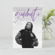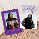 Cartão de anúncio de graduação moderno com a foto favorita do seu formando na frente com "Formando" em um roteiro escrito à mão roxo. Personalize a frente do anúncio adicionando o nome do formando, o nome da escola e o ano de graduação. O anúncio da graduação da tendência reverte para exibir 3 fotos adicionais com espaço para texto, como planos futuros, detalhes da graduação, detalhes do partido, etc. O anúncio de 4 fotos é perfeito para formandos de segundo grau e de faculdade.