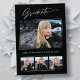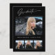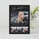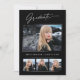 Quatro cartões de anúncio de fotografia, tendências, modernos e elegantes, com design de elementos do texto moderno com roteiro de tinta para a caligrafia. As fotos do formando na frente da placa são realçadas com uma delicada e minimalista placa de gradiente. A parte traseira do cartão oferece espaços de texto personalizados para informações sobre a sua graduação ou pode ser apagada se você quiser enviar uma mensagem. Preto e branco ou personalize facilmente o fundo para corresponder à cor primária da sua escola ou a qualquer cor da sua escolha. Perfeito para segundos graus, universitários e formandos universitários.
