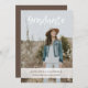 Anúncios modernos de graduação rústica minimalista apresentando a foto favorita do mais velho do formando e uma fonte moderna manuscrita. Personalize esses anúncios elegantes de graduação com o nome do formando, o nome da escola e o ano de graduação.