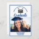 Este cartão de anúncio de graduação de segundo grau de marchas azuis personalizado apresenta uma imagem de tambores fofinhos para uma classe de formando 2024 acima de sua foto de retrato de mais velho. Personalize com o seu ano de graduação com a fotografia de um cartão de graduação personalizado de escola de música de excelente.