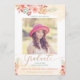 Anuncie seu segundo grau ou formandos com este cartão com fotos de lançamento de graduação química apresentando flores pintadas manualmente e guião dourado. Personalize essas placas com sua própria foto e texto personalizado.