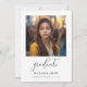 Um cartão Elegante de Anúncio de Graduação de Fotos com Script com uma bela tipografia de script manuscrita em preto. Este anúncio é perfeito para qualquer anúncio de graduação para segundo grau ou faculdade. Adicione sua própria foto e personalize o texto com as informações que você precisa adicionar para este anúncio especial Ilustrado e projetado por Patricia Alvarez.