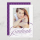 Comemore a conquista do seu formando com este elegante anúncio de graduação, apresentando sua foto de mais velho combinada com uma bela caligrafia roxa moderna. Personalize o anúncio, acrescentando o nome do formando, o nome da escola e o ano de graduação, criando uma manutenção verdadeiramente única para comemorar o seu dia especial. Esse na moda e design sofisticado é perfeito para formandos segundos graus ou universitários, oferecendo uma maneira refinada de compartilhar esse marco importante com amigos e familiares.