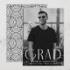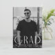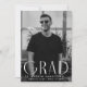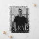 Anúncio de graduação simples com a foto vertical do formando com "Formando" exibido em caracteres brancos e modernos de deco. Personalize a frente do anúncio de graduação em fotos do solteiro adicionando o nome do formando, a escola e o ano de formando. O anúncio é revertido para exibir um design de espiral geométrico preto e branco.